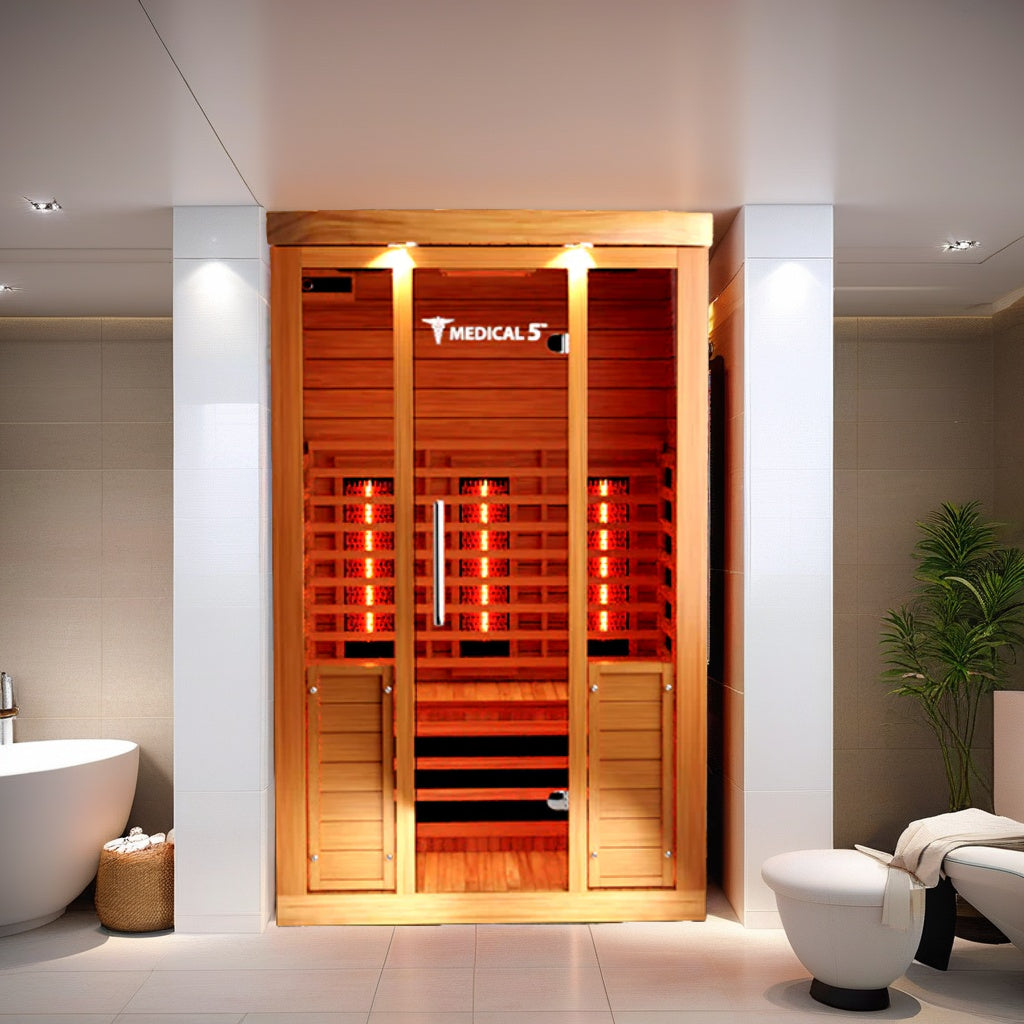 Chromotherapy & Red Light Therapy functions available along with steam and traditional heat systems